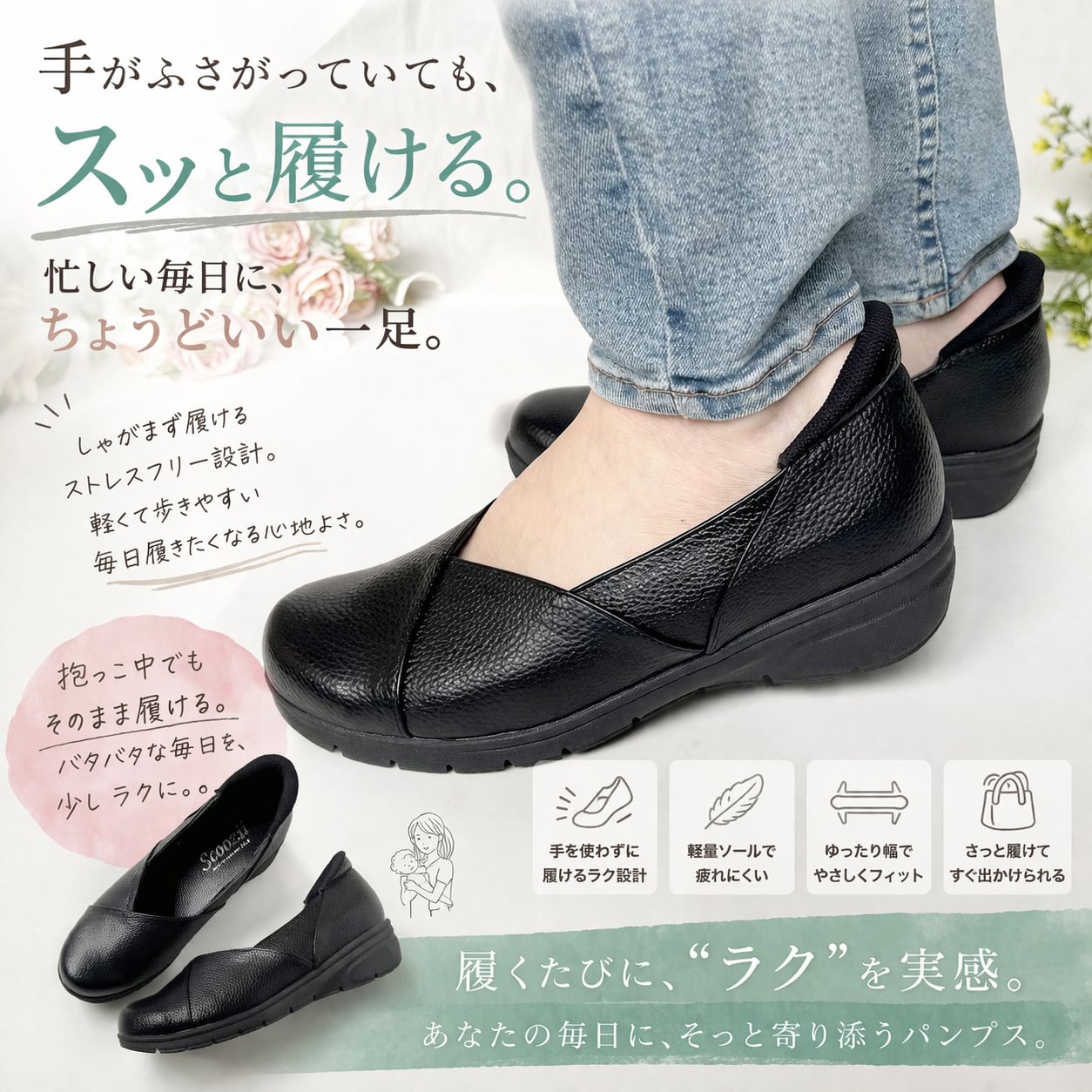 脱ぎ履きの手間を減らし、毎日の動きをスムーズにしてくれます。